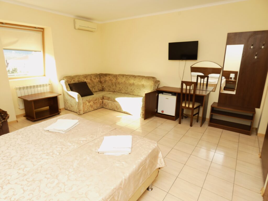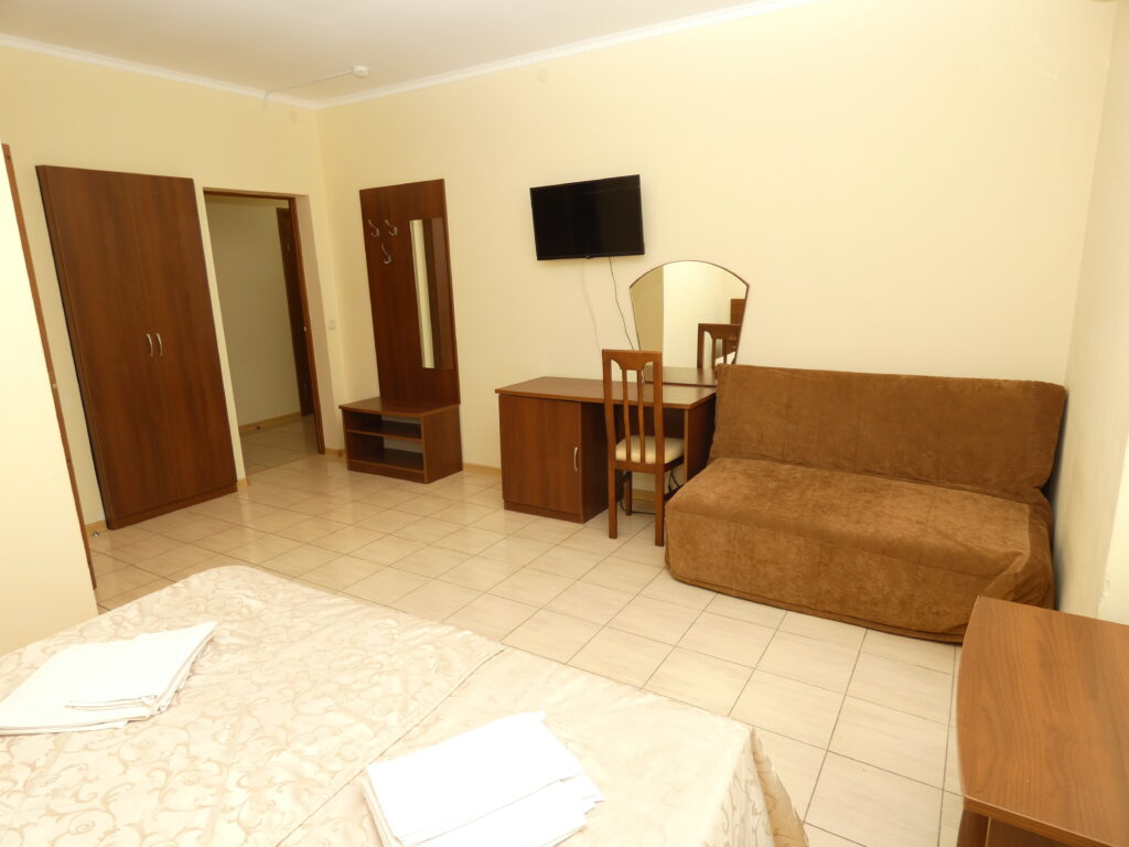 Комфортабельные номера: В «Бризе» представлены номера различных категорий — от уютных «Стандартов» до просторных семейных вариантов со всеми удобствами (кондиционер, ТВ, холодильник, санузел).