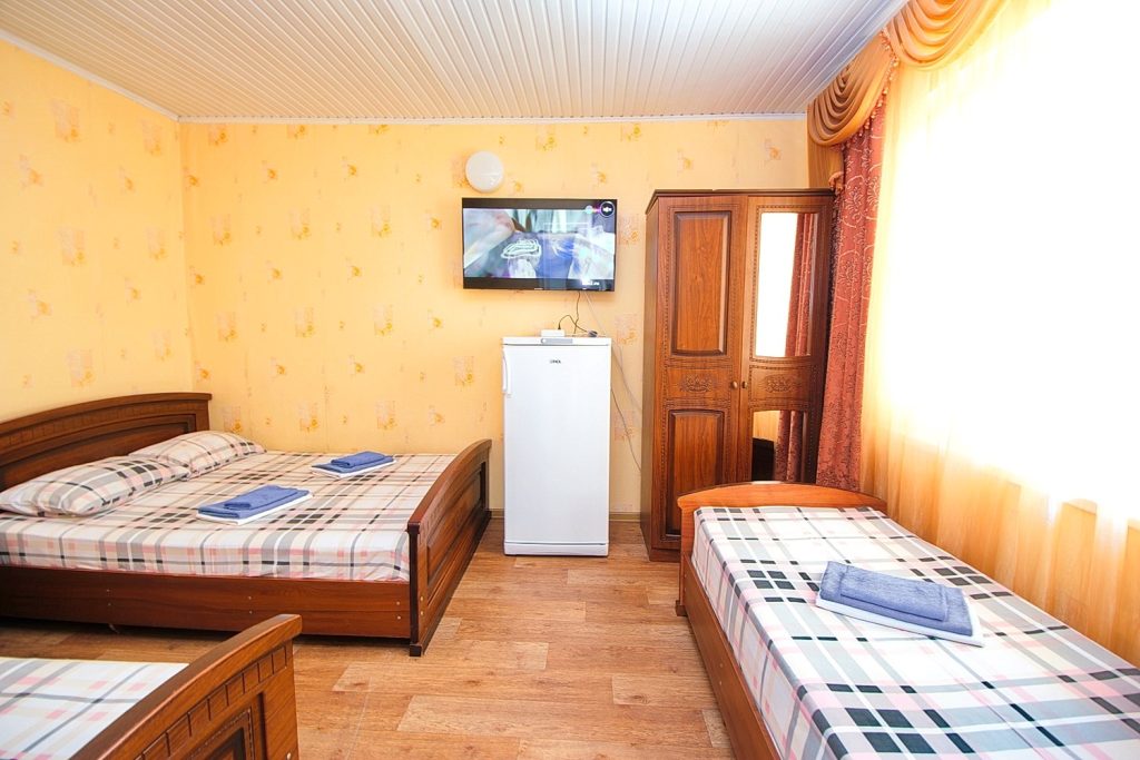 Номера представлены одно и двуспальными кроватями, 3х, 4х местным размещением. В номере телевизор кондиционер, шкаф, мини холодильник, прикроватные тумбы, WI-FI. Душ и сан. узел на этаже.
